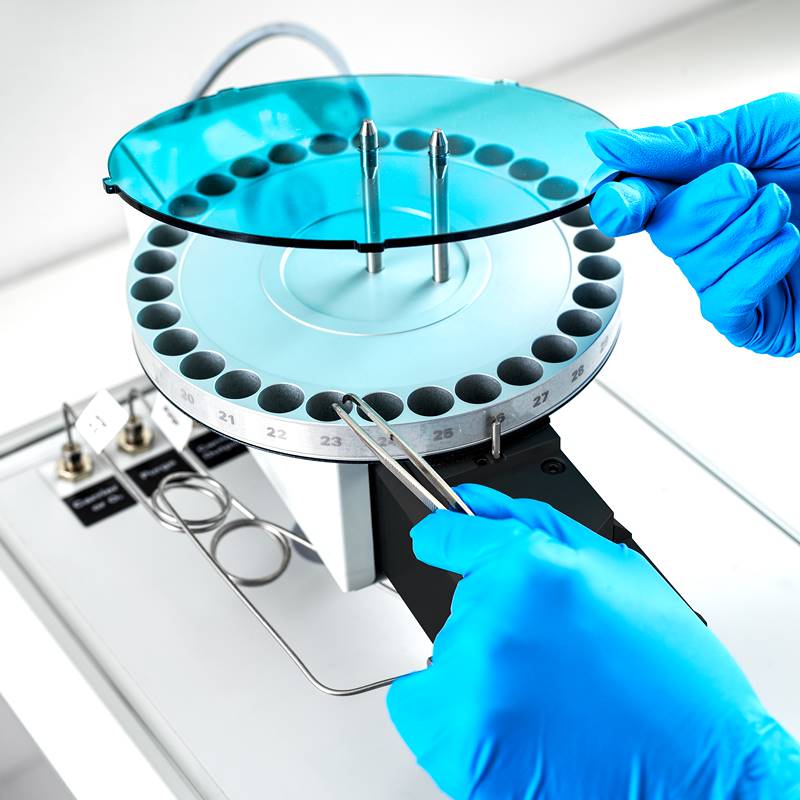 Processing up to 117 samples at a time, EMA 502 is extremely efficient and ensures the highest sample throughput thanks to the electronic autosampler and microbalance connection to the PC for direct weighing data transfer.